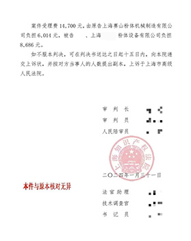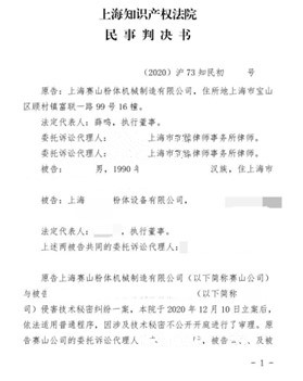 目前市場中出現,上海XX粉體設備公司對外宣稱使用上海賽山粉體相同技術,提供賽山粉體設備維修等服務。
