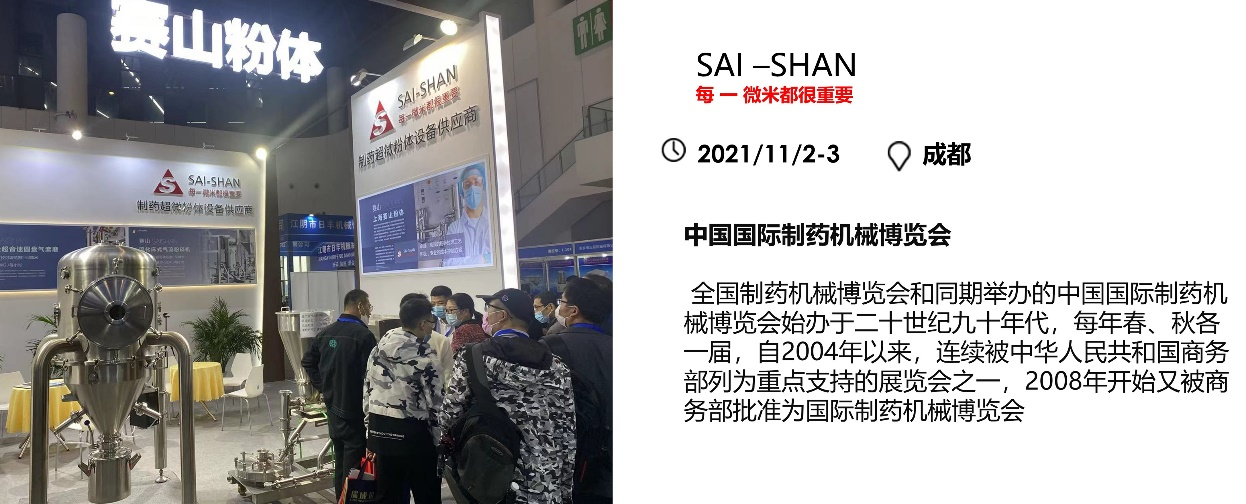 賽山粉體參加全國制藥機械博覽會,現場展示了用于原料藥超細粉碎的氣流粉碎機,超微粉碎機。在保證健康安全的前提保障下,向現場觀眾介紹展示了相關設備,并于現場觀眾交流。